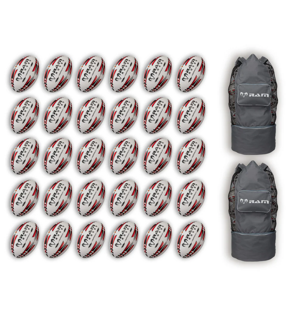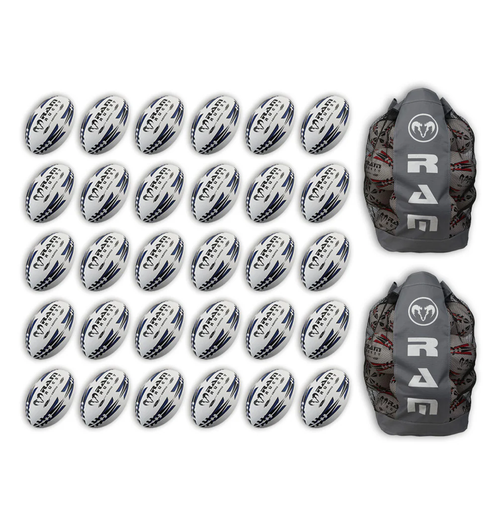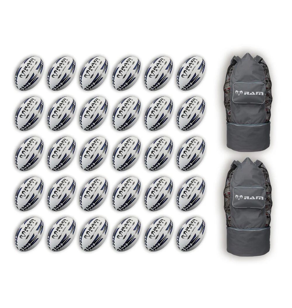 Ram Rugby Gripper 2.0 Pro Trainer Rugby Ball Bundle 30 palloni 2 sacche