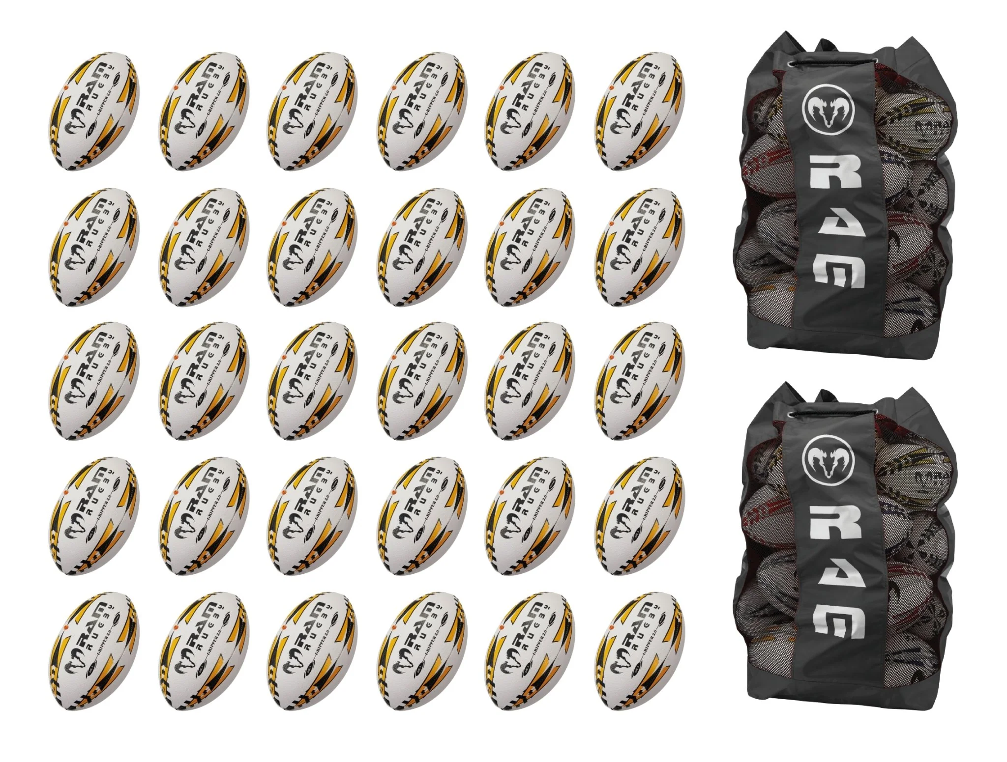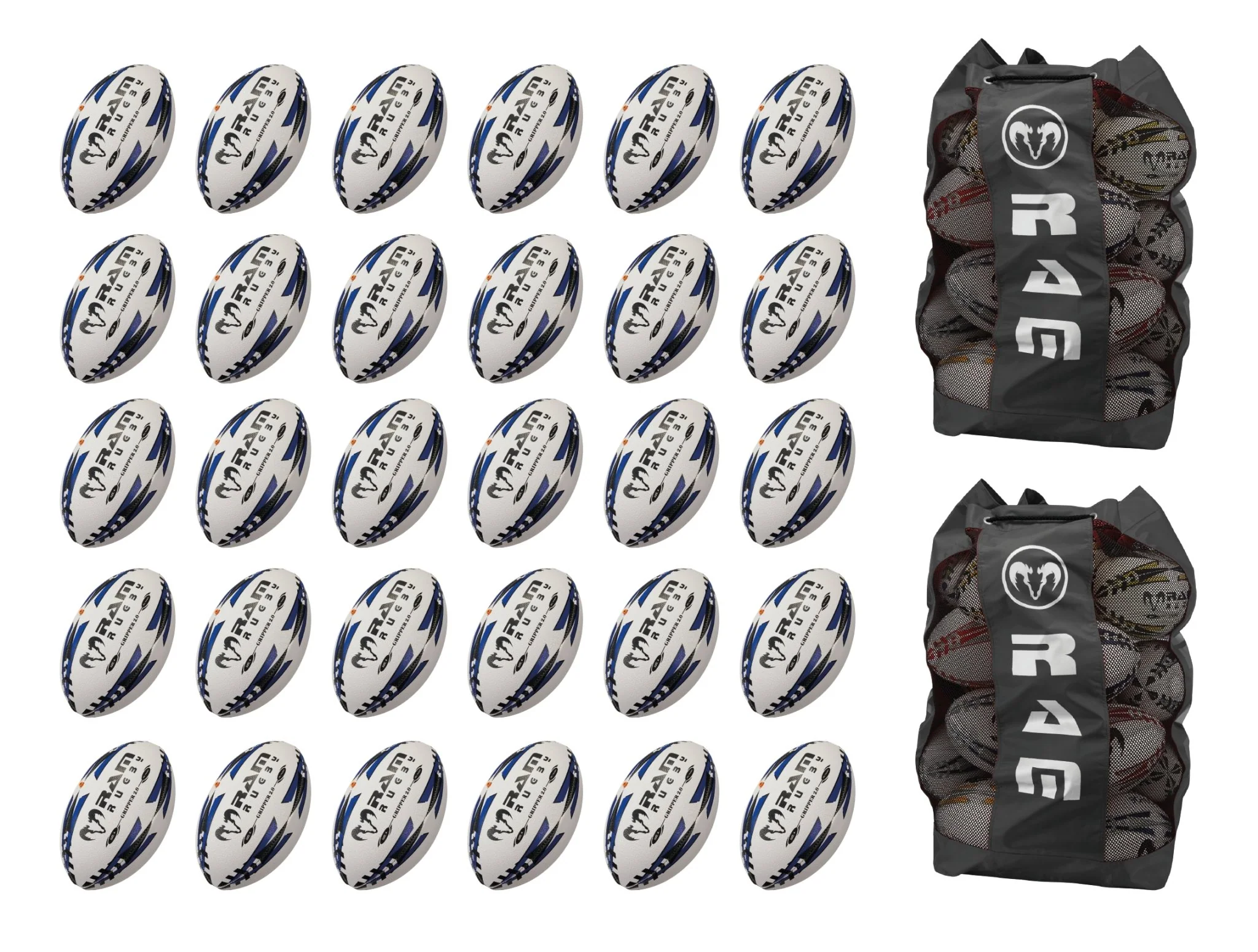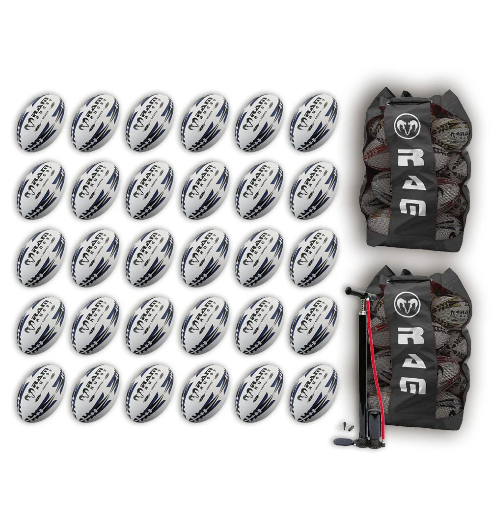 Ram Rugby Gripper 2.0 Pro Trainer Rugby Ball Bundle 30 palloni 2 sacche