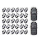 Questo bundle contiene 30 palloni da rugby Gripper 2.0 Pro Trainer e due borse traspiranti per una facile conservazione e trasporto.